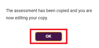4. This will notify you that the assessment was copied and you are editing that copy of the assessment. Click OK