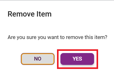 A message will appear asking if you are sure you want to remove the item. Click YES.