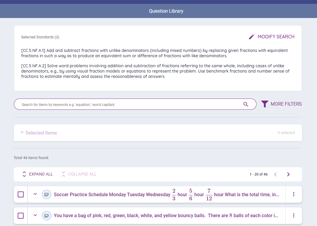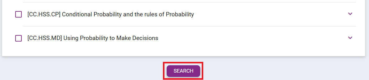 Check the standards desired to search for questions. Then click SEARCH.
