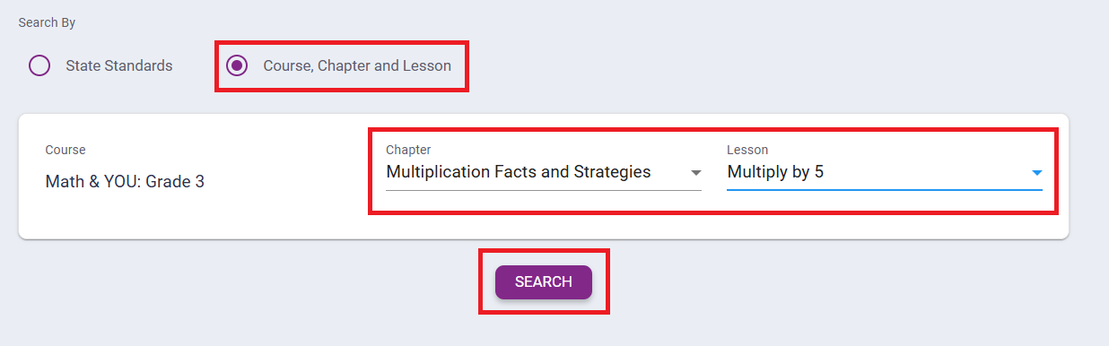 Searching by Course, Chapter and Lesson