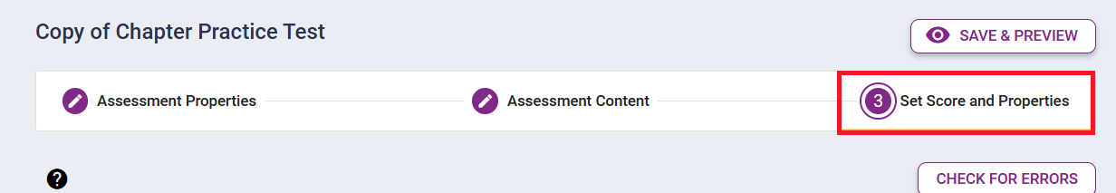 7. After adding and removing questions, Click the Set Score and Properties tab.