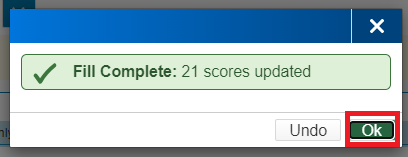 3. To fill in the entire Score column, you can click the vertical Fill arrow, and it will fill the entire column. When you receive a message saying Fill Complete, click Ok.