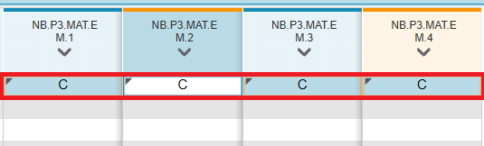 5. Click into a standards cell and enter the appropriate Performance Indicator (N, B, C, or S) for that standard in the Score Inspector.