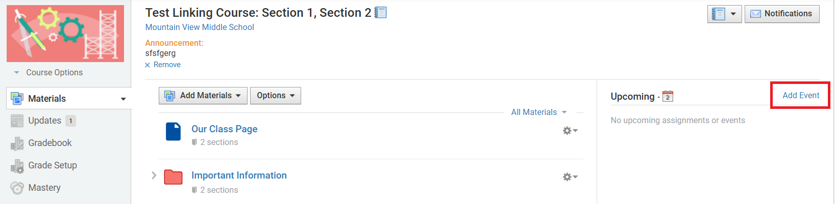 Adding an Event from a Course or Group