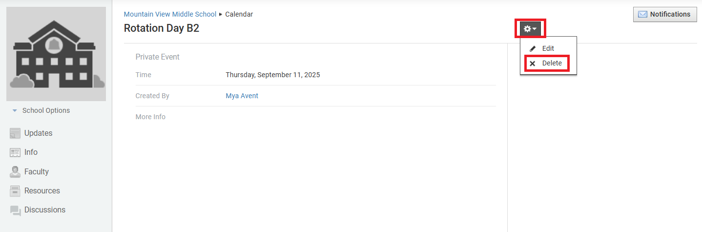 6. When it asks if you are sure you want to delete the event, click Delete.