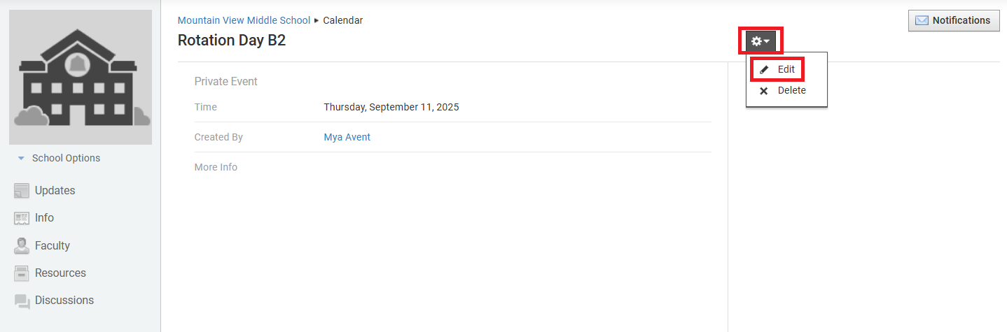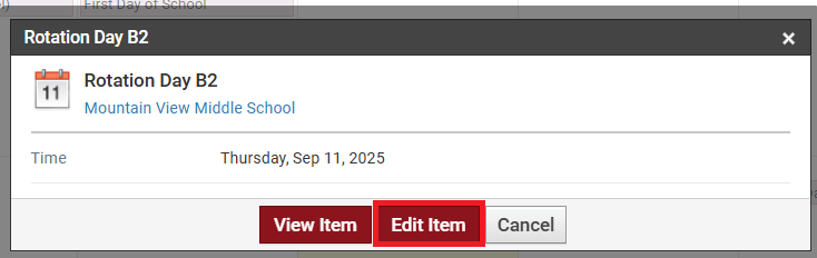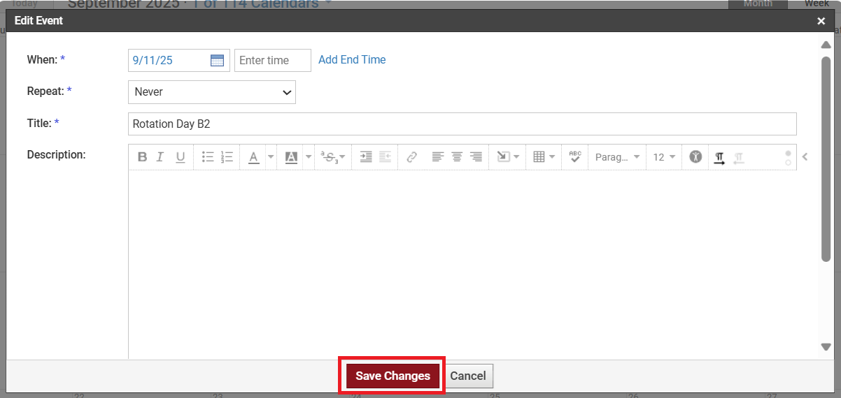 Make sure the calendar you want to edit the event from is selected from the Calendar drop-down.