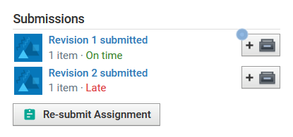 6. Once it has finished uploading, you will see your assignment on the right side of the screen. You can also re-submit an assignment (if your teacher is accepting resubmissions) by clicking on the Re-submit Assignment button, as well as see each submission you have made.