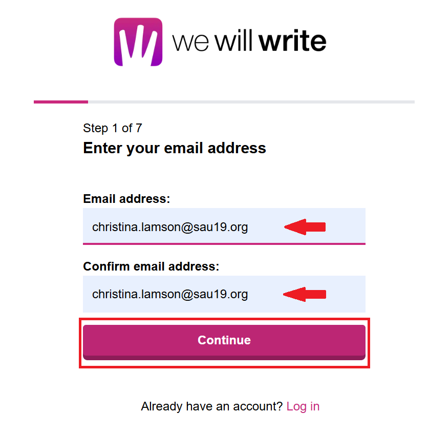 7. Select your school from the Schools drop-down menu. If you cannot locate your school, click Can't find your school? and follow the prompts to add your school. Then click Continue.