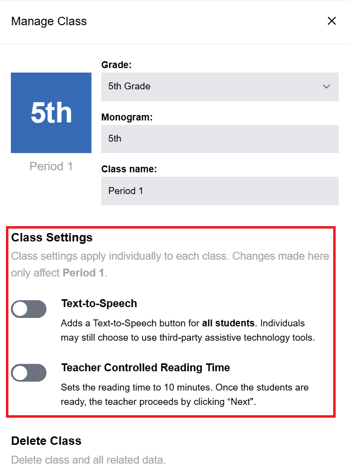 Your class will now be created. You can click on the class to edit additional settings or delete the class. To create another class, click New Class and repeat the steps above.