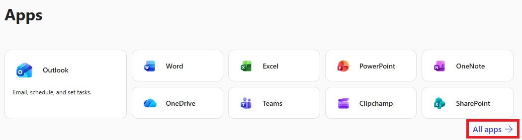 1. Go to https://m365.cloud.microsoft/apps and log into your account, if it is not already logged in.