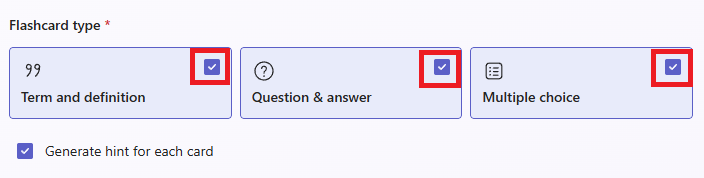 8. Check the Generate hint for each card checkbox if you want to include a hint with each flashcard. Uncheck this if you do not want it included.