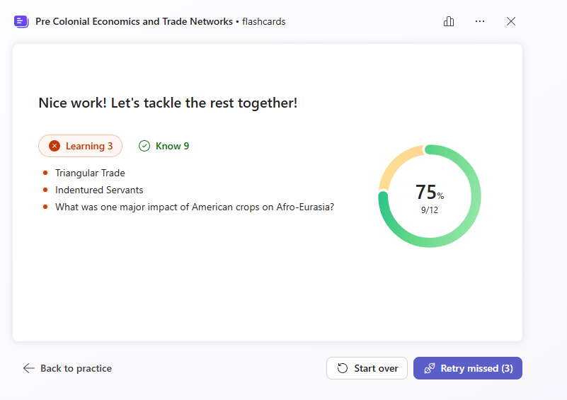 You will now be able to access this set of flashcards at any time within the app. You will also be able to see data on usage of the flashcards such as how many students have started using them, how many have completed them, the average score they received on them, and which cards were most challenging (which will inform you which information may need to be revisited).