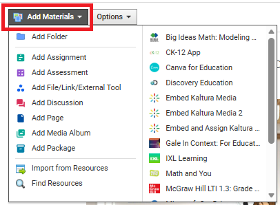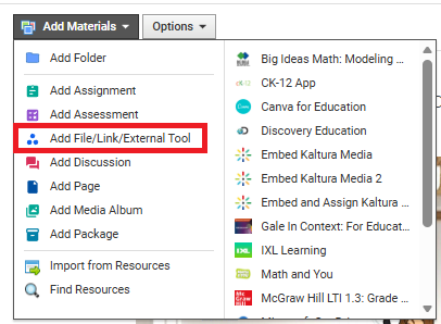 8. Select Add File/Link/External Tool from the drop-down menu.