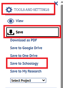 4. Click the Tools menu (gear icon). Then click Save and choose Save to Schoology/Schoology.