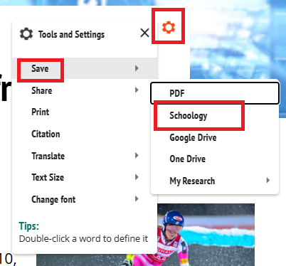 5. Save to Schoology will post the article to the Materials section of the course. All students with access to the course, now have access to this article within their course.