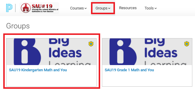 1. Log into Schoology and click on Groups from the top navigation menu. Then click on the Group you want to access resources from.