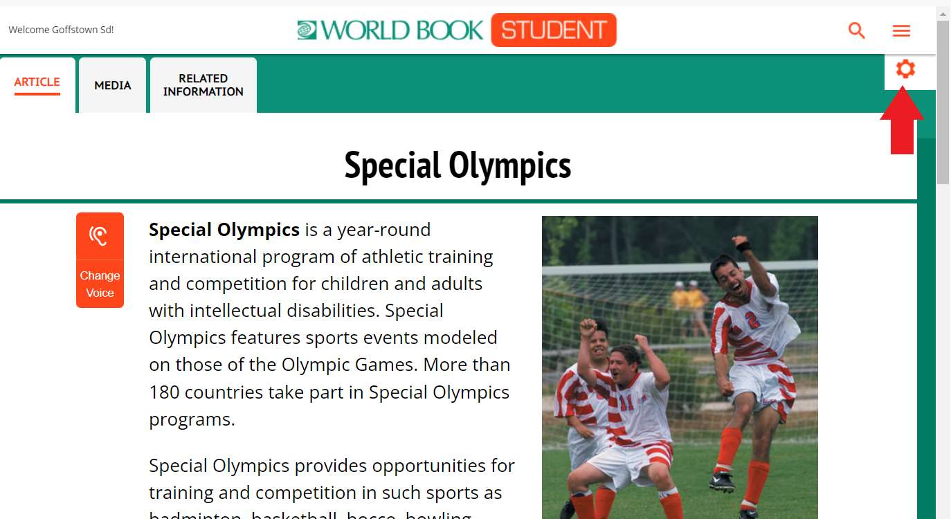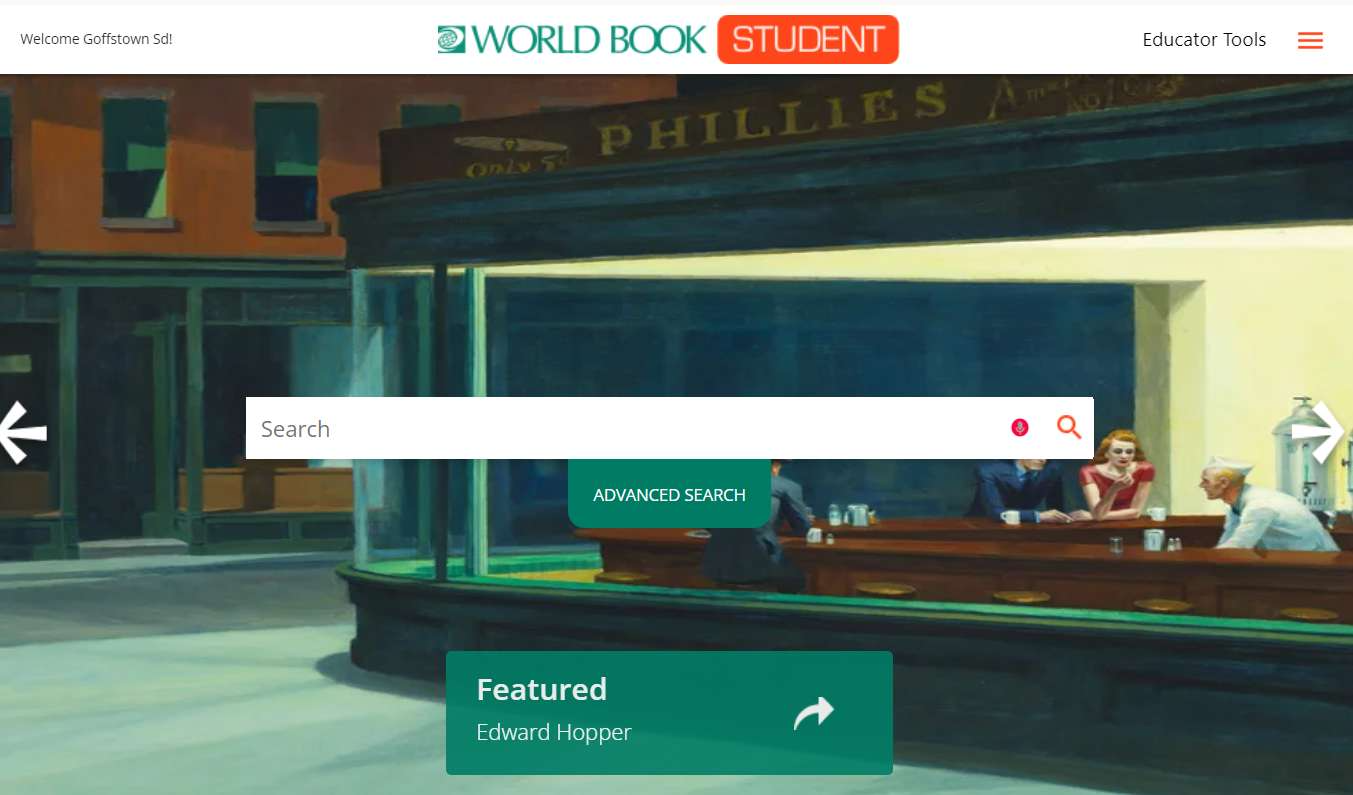 The World Book Online homepage will display inside of Schoology.