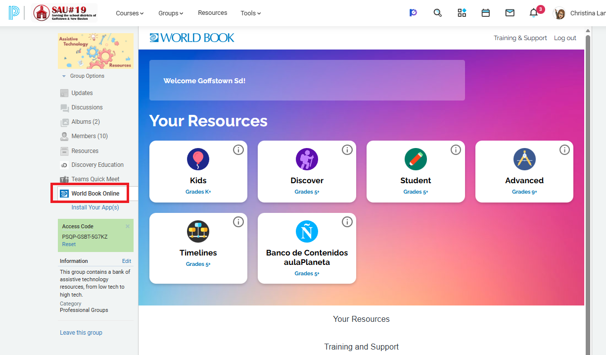 Accessing World Book Online from within a Schoology Group