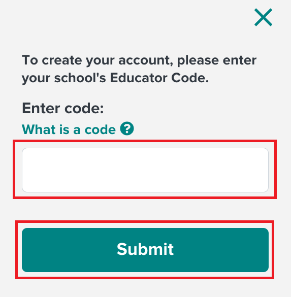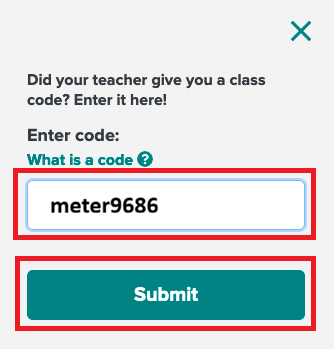 3. When they are prompted to enter a Class Code, have them enter the code you received when you created the class. Then then click Submit.