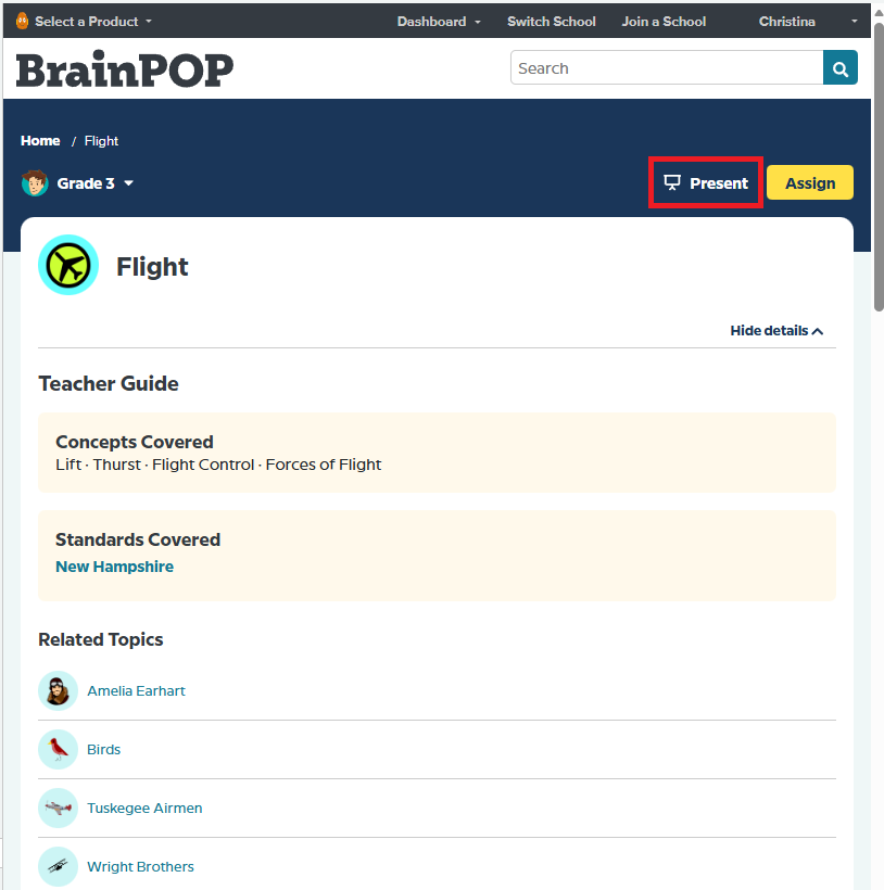 1. Log into BrainPOP/BrainPOP Jr. and search for a desired topic.