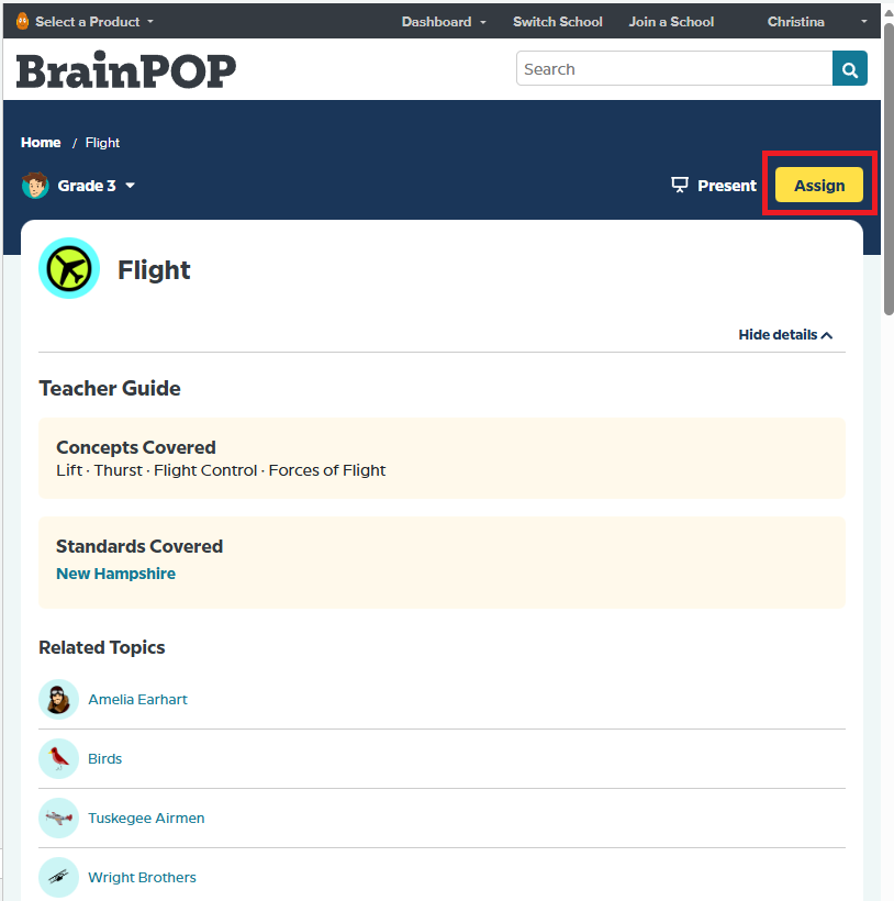 Teachers can assign content to student in BrainPOP/BrainPOP Jr. Please follow these directions to assign a feature: