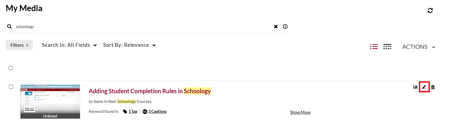 5. Click on the Edit icon (pencil) to edit the video you want to share.