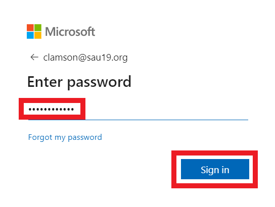 1. Log into your Microsoft 365 online account and log in using your school username@sau19.org and your normal computer password.