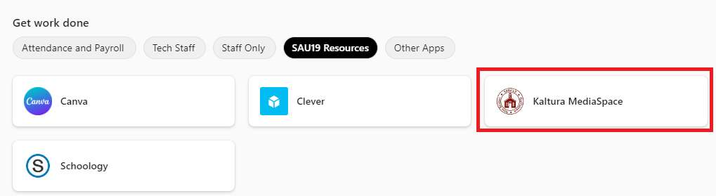 2. Under the Get work done section, click on the SAU19 Resources tab and click on Kaltura MediaSpace.