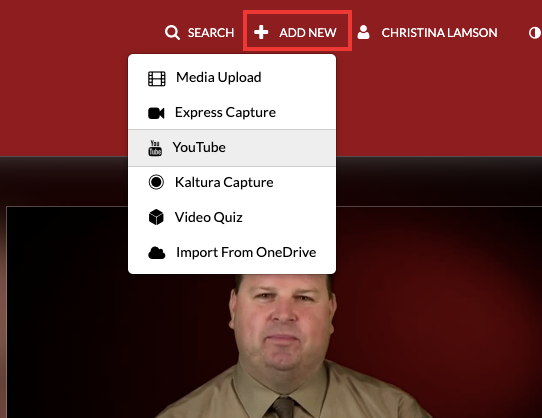 4. Add a media file, YouTube video link, or record your own using Kaltura Capture.