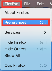 2. On a Mac, Click on 'Firefox' from the top navigation menu and then select 'Preferences'. On a PC, click the gear and then select 'Manage more settings'.