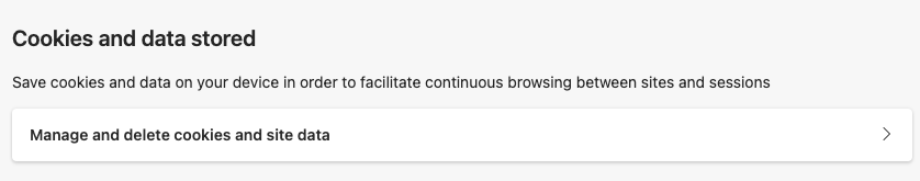 4. Under 'Cookies and data stored', click on 'Manage and delete cookies and site data'.