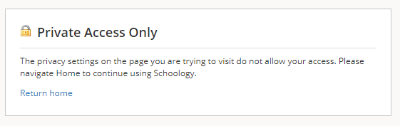 When inside a Course, you will see curriculum resources on the left side bar. Parents will not be able to access these resources through their account. Instead, a Private Access Only message will appear. If they receive this message, simply navigate back to the child’s account by clicking the back button on the browser or by clicking on the Return home button in this message.
