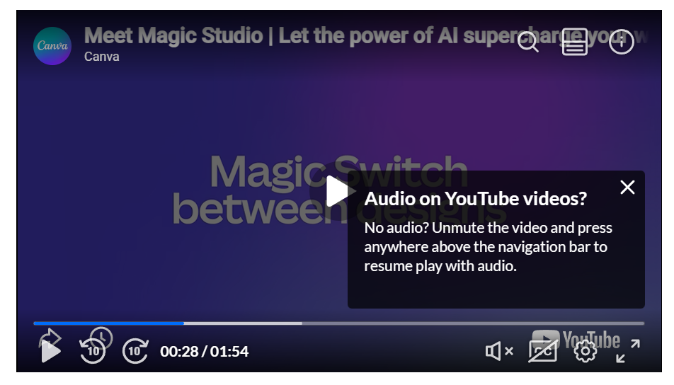 1. Click X to remove the text overlay about Audio on YouTube videos.