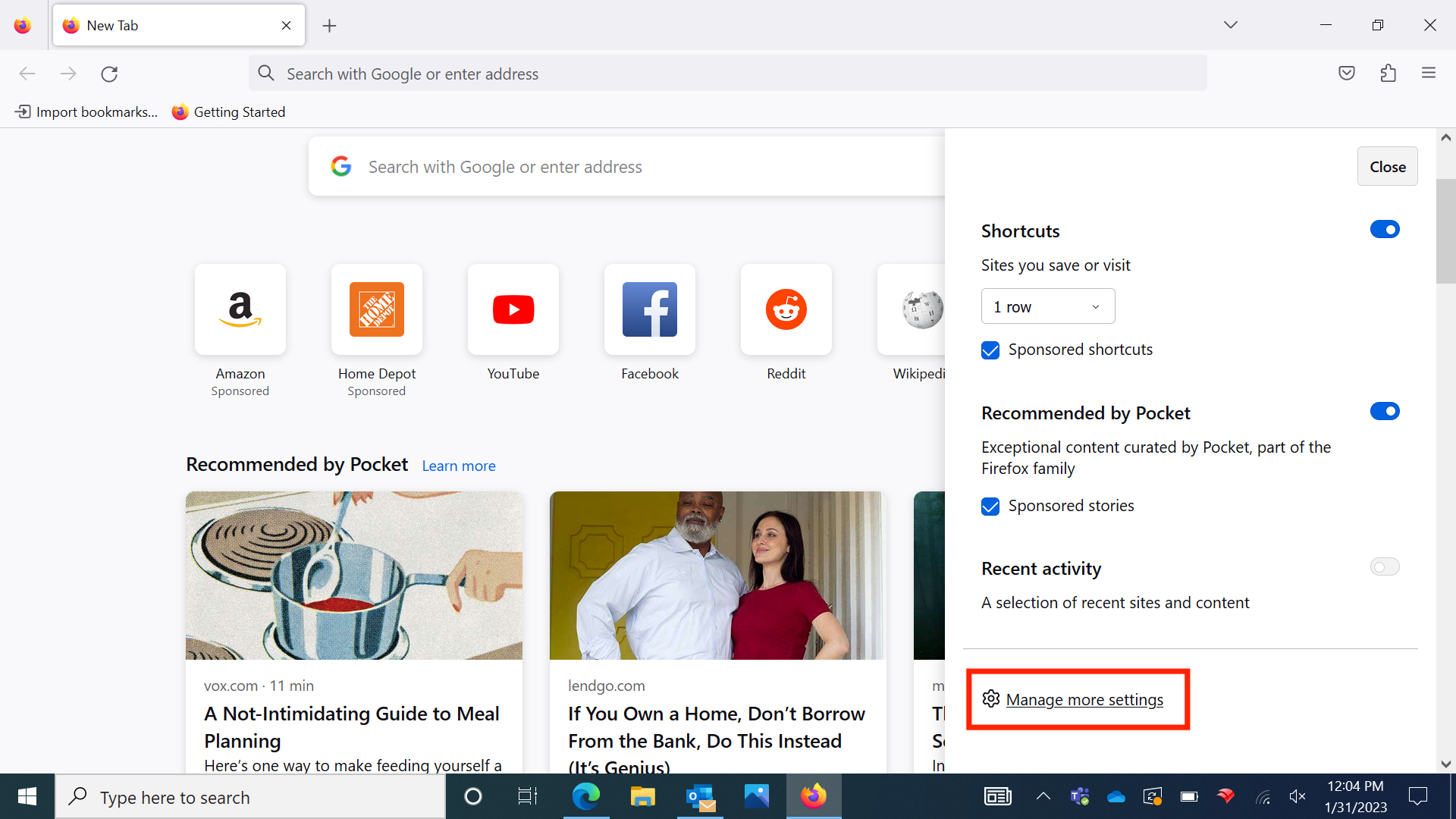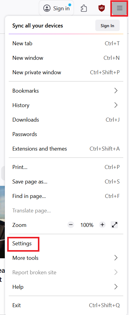 2. On a Mac, click on Firefox from the top navigation menu and then select Preferences. On a PC, click the menu (three horizontal lines) to access your menu and select Settings. If you have an older version on the browser, click the gear icon and then select Manage more settings.