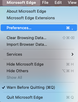 2. On a Mac, click on Microsoft Edge from the top navigation menu and then select Preferences. On a PC, click the three dots next to your profile image and then select Settings.