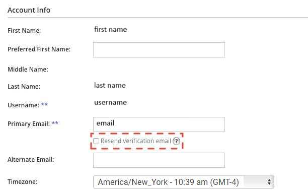 4. You will see your email listed. If you have not verified your email, click Resend verification email. This will send a new verification link to your email.