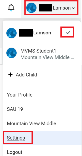 *If you are on a browser, please make sure your name has the checkmark next to it. If your child's name is checked, click on your name before completing the next steps.