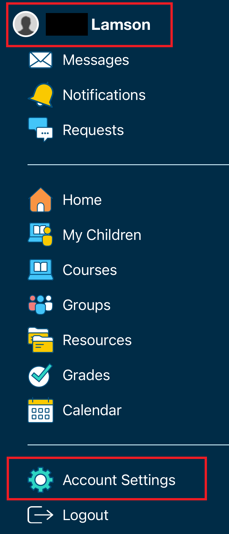 3. If on a browser, click Settings from the drop-down menu. If on the App, click Account Settings from the menu.