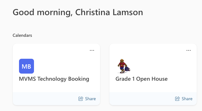 c. Once the calendar that you are looking appears, click on it and it will be added to your Bookings main calendars homepage.
