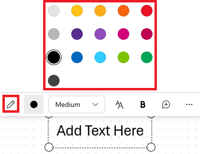 2. Select the Text color picker button (circle) to choose a new text color. The font cannot be changed.