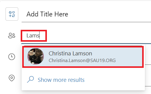 7. Begin typing a name into the Optional attendees field and once it auto populates, click on the name. Repeat for any optional attendees.