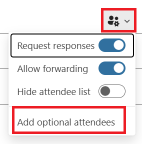 6. Click the participants icon on the right-hand side and select Add optional attendees to get a field to add any optional attendees.