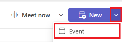 2. Click on the drop-down arrow next to New from the menu options and select Event.