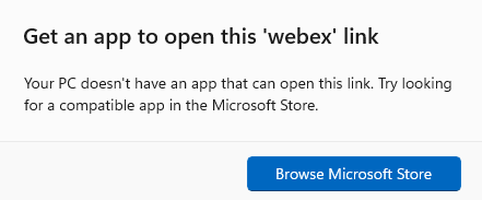 If you have not downloaded the Webex app on your device yet, you will receive this message: