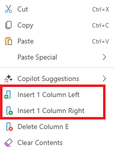 2. Click on either Insert 1 Column Left or Insert 1 Column Right. A column will be inserted.