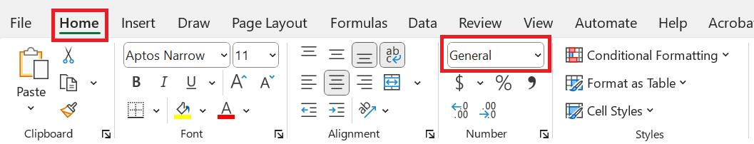 2. Click on the Home tab in the top navigation bar and click the drop-down menu in the Number section.