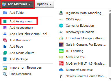 1. While on the Materials tab, click Add Materials and then select Add Assignment from the drop-down menu.