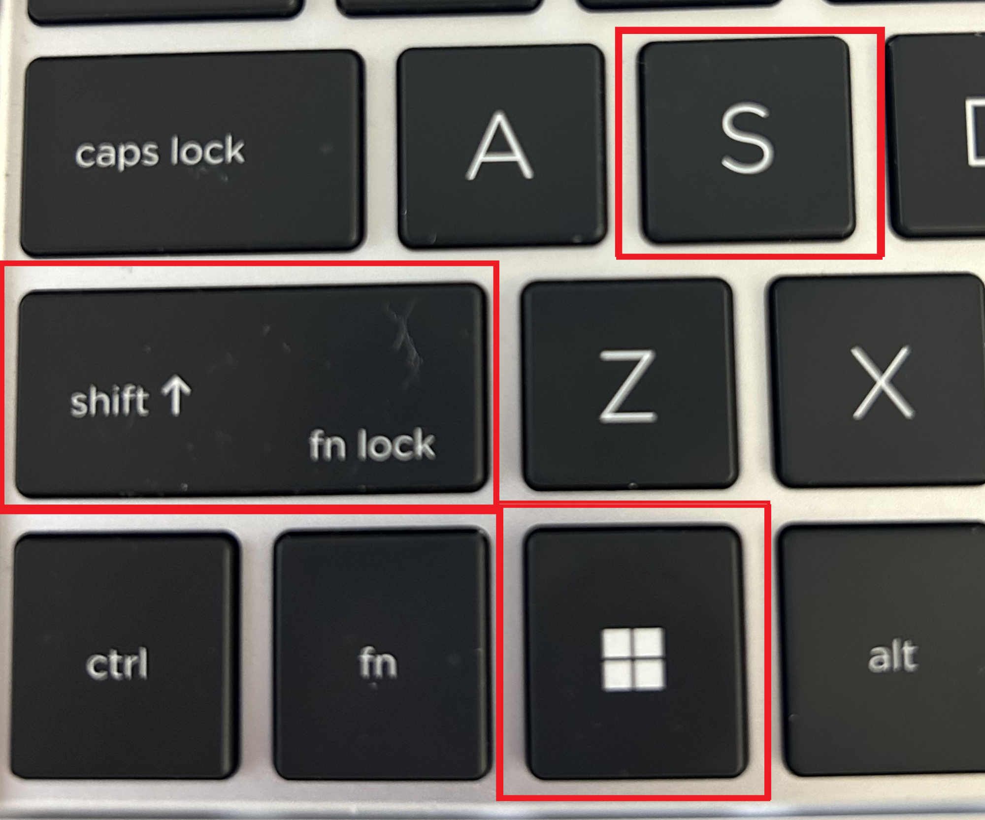 2. Press and hold down the Windows key, the Shift key, and the S key.