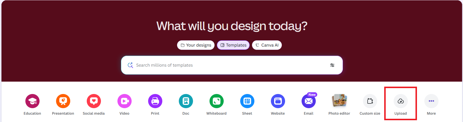 1. Open Canva. For directions on how to log into Canva, please click this link: https://support.sau19.org/help/en-us/26-canva-for-education/21-canva-schoology-integration.