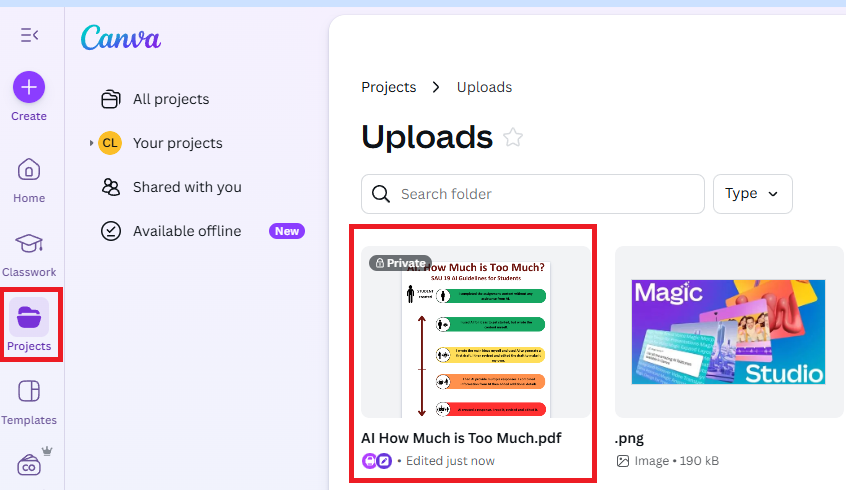 Canva can be used to reorganize and delete PDF pages. Depending on the PDF, it may also be used to edit text or designs on the PDF. To edit a PDF in Canva, please follow these directions: